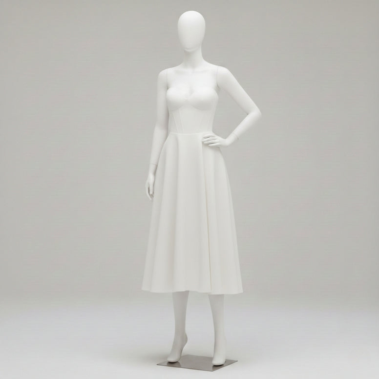 • Sculpted Architectural BodicePrecision tailoring and integrated boning enhance the waist to create a flattering, structured silhouette.